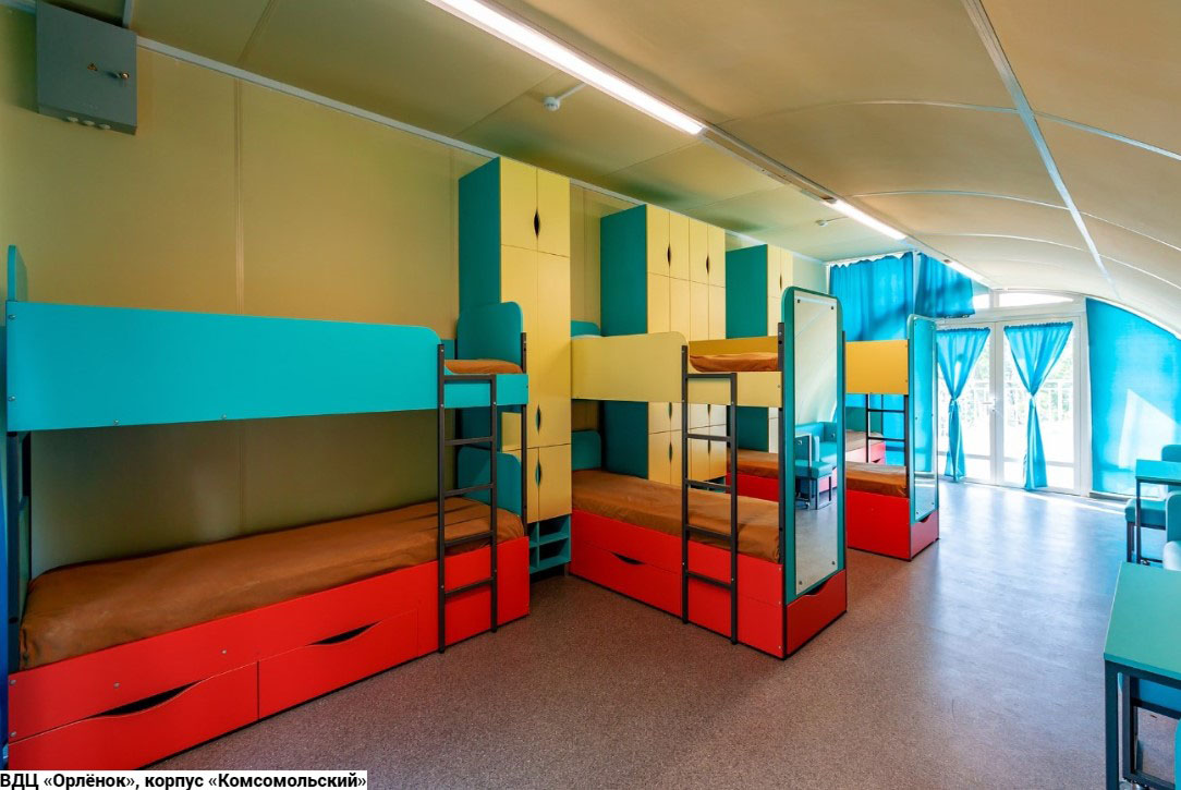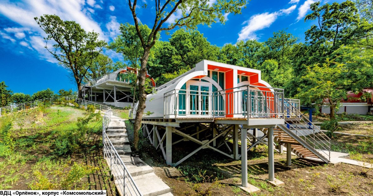 Лагерь «Комсомольский»: домики на 10-14 человек без удобств, удобства в отдельном санитарно-гигиеническом домике. В каждой комнате имеются одноярусные кровати, тумбочки, шкафы. Лагерь находится на берегу моря, рассчитан на 500 мест. Приехавшие в лагерь дети могут принимать участие в самых разных проектах и мероприятиях. Один из наиболее интересных проектов: «Школа Интересных Каникул», в которой ребенок выбирает предмет для обучения самостоятельно, исходя из своих интересов. За две недели ребенок сможет не только освоить новую специальность «лидер-организатор детского досуга», но и получить свидетельство об окончании курса. Интересны и обучающие занятия по основам лидерства: «Клуб общения», «Как организовать дело», «Как работать в команде», «Имидж лидера», «Как работать с информацией». Возраст детей от 11 до 17 лет.